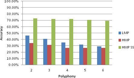 1 Introduction 1 2 Background and Related Works 2 2.1 Terms . . . . . . . . . . . . . . . . . . . . . . . . . . . . . . . . . . . . . . . . . . . . 2 2.2 Related Works . . . . . . . . . . . . . . . . . . . . . . . . . . . . . . . . . . . . . . . 4 2.2.1 Matching Pursuit . . . . . . . . . . . . . . . . . . . . . . . . . . . . . . . . . . 4 2.2.2 Harmonic Matching Pursuit . . . . . . . . . . . . . . . . . . . . . . . . . . . . 5 2.2.3 HMP with Spectral Smoothness . . . . . . . . . . . . . . . . . . . . . . . . . 7 2.3 Problem . . . . . . . . . . . . . . . . . . . . . . . . . . . . . . . . . . . . . . . . . . . 9 3 Proposed Solution 9 3.1 Linear Matching Pursuit . . . . . . . . . . . . . . . . . . . . . . . . . . . . . . . . . . 9 4 Experiments 13 4.1 Metrics . . . . . . . . . . . . . . . . . . . . . . . . . . . . . . . . . . . . . . . . . . . 13 4.2 Dataset . . . . . . . . . . . . . . . . . . . . . . . . . . . . . . . . . . . . . . . . . . . 15 4.3 Parameters . . . . . . . . . . . . . . . . . . . . . . . . . . . . . . . . . . . . . . . . . 15 4.4 Results . . . . . . . . . . . . . . . . . . . . . . . . . . . . . . . . . . . . . . . . . . . . 16 5 Conclusion 19 6 Appendix 20 List of Figures 1 Harmonics Vibrating on a String . . . . . . . . . . . . . . . . . . . . . . . . . . . . . 5 2 Note-set Search Tree . . . . . . . . . . . . . . . . . . . . . . . . . . . . . . . . . . . . 10 3 Accuracy Values . . . . . . . . . . . . . . . . . . . . . . . . . . . . . . . . . . . . . . 18 4 Error Values . . . . . . . . . . . . . . . . . . . . . . . . . . . . . . . . . . . . . . . . . 18 5 Speed Values . . . . . . . . . . . . . . . . . . . . . . . . . . . . . . . . . . . . . . . . 19 List of Tables 1 Symbol Table . . . . . . . . . . . . . . . . . . . . . . . . . . . . . . . . . . . . . . . . 20 2 Interval Ratios . . . . . . . . . . . . . . . . . . . . . . . . . . . . . . . . . . . . . . . 21 3 Parameter Settings . . . . . . . . . . . . . . . . . . . . . . . . . . . . . . . . . . . . . 21 4 Piano Notes . . . . . . . . . . . . . . . . . . . . . . . . . . . . . . . . . . . . . . . . . 22About this Master's Thesis